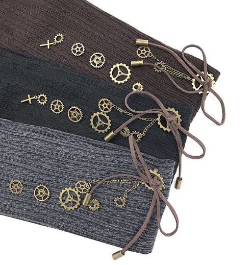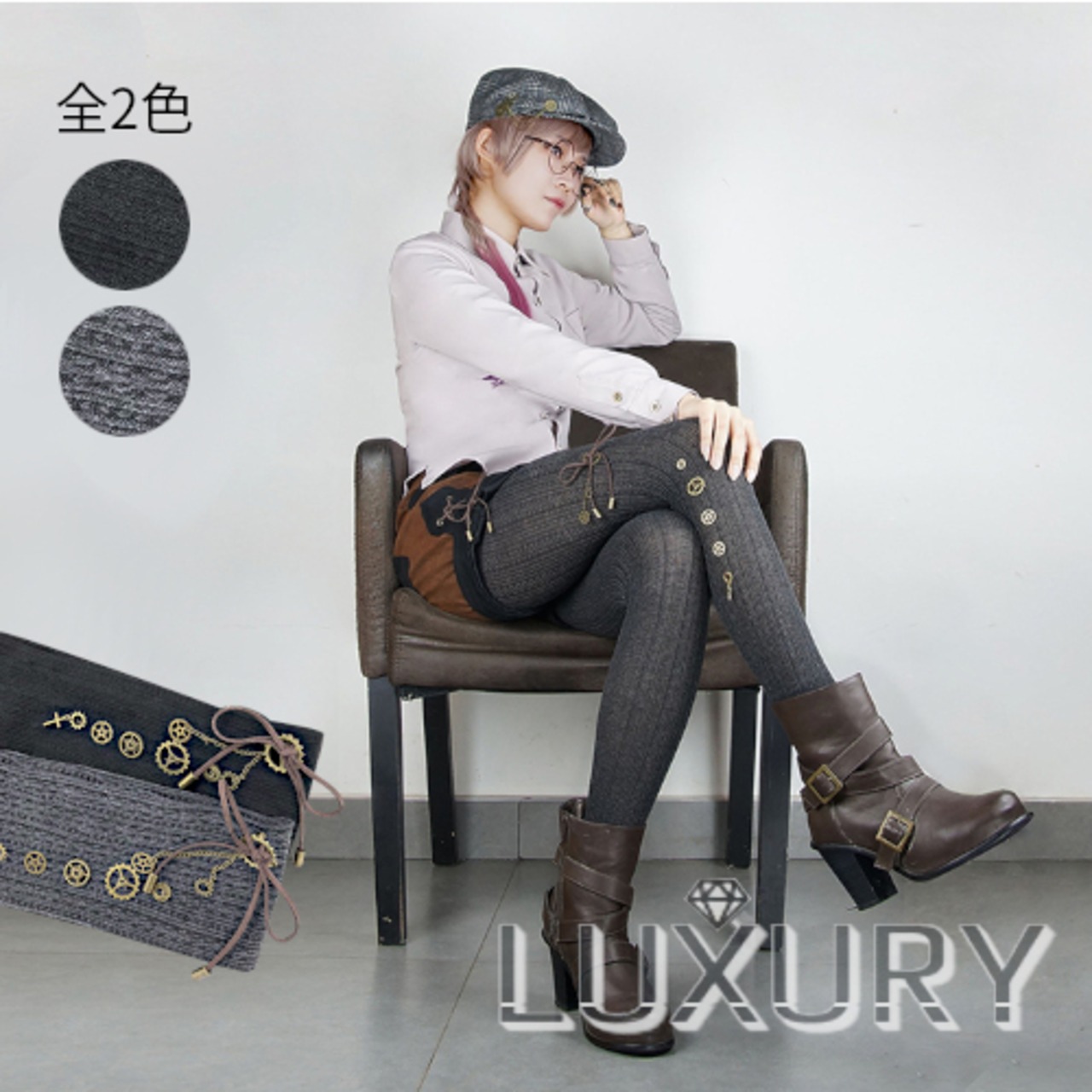 スチームパンク レギンス ニット ブラック グレー ギア チャーム付き かわいい 春物 靴下 タイツ ゴスロリ ロリータファッション loli2120