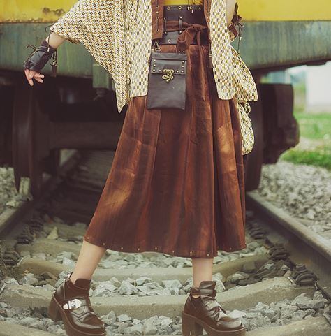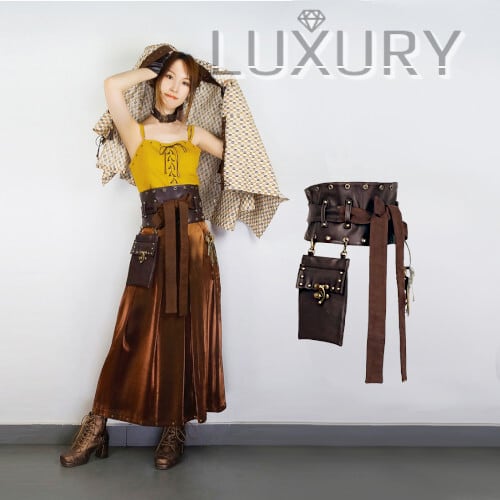 スチームパンク コルセットベルト リボン キーリング付き ブラウン フェイクレザー 通年 ロリータファッション loli2142