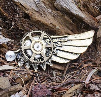 スチームパンク ブローチ アクセサリ 通年 翼 羽 フェザー ギア 小物 雑貨 シルバー ゴスロリ ロリータファッション loli2164