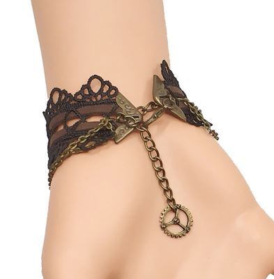 スチームパンク ブレスレット ビジュー レース ブラック ギア チャーム かわいい アクセサリ ロリータファッション loli2169