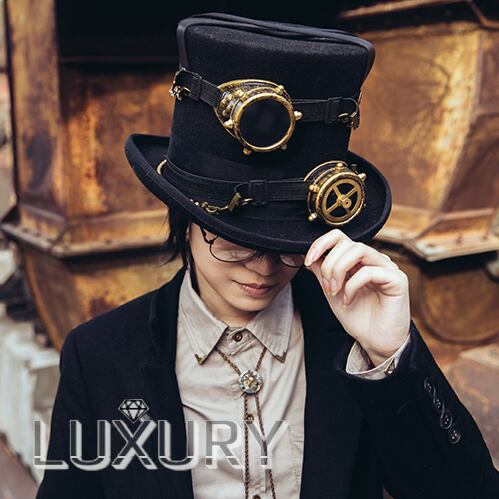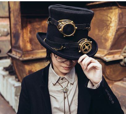 スチームパンク ハット ゴーグル付き 帽子 ブラック ユニセックス パンク カジュアル ロリータファッション loli2198