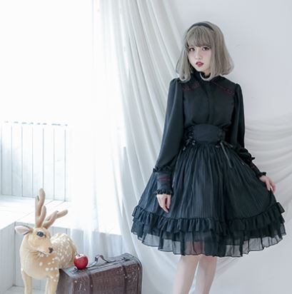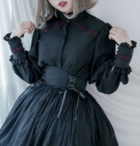 ロリータファッション/ロリータ/ブラウス/ブラック/バイカラー/ハイネック/リボン/甘ロリ/クラシカル/無地/長袖/上品/トップス/ボリューム/ふんわり/かわいい/スウィート/カジュアル/おしゃれ/春夏/すっきり/シンプル/着回し/キュート/クラシカル/こなれ感/レトロ/おしゃれ/通年/春物/ゴスロリ/ゴシック/カジュアル/おしゃれ/コスチューム/フェミニン/パンク/Lolita/ガーリー/キュート/茶話会/コスプレ/レトロ/お姫様/お出かけ/コスプレ/イベント/レース/韓国ファッション/おしゃれ/デート