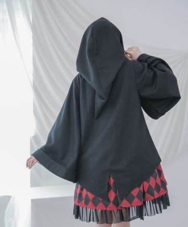 ロリータ フードジャケット Dolly Delly ライトアウター 春物 ダイヤ 幾何学 バイカラー レッド グレー 魔女 コスプレ カジュアル キュート おでかけ ロリータファッション loli2256
