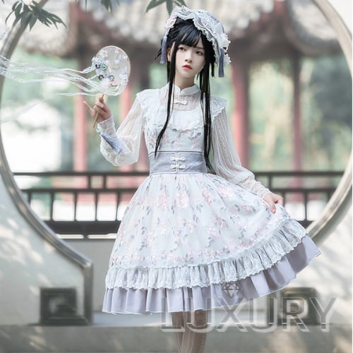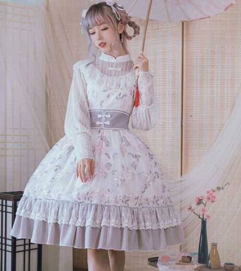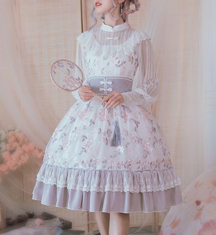 ロリータファッション/ジャンスカ/JSK/ワンピ/ワンピース/お呼ばれ/おでかけ/イベント/コスプレ/ゴスロリ/ノースリーブ/ワンピース/春夏/ホワイト/ミディアム/かわいい/人気/トレンド/花柄/刺しゅう/フレア/清楚/エレガント/フェミニン/涼やか/華ロリ/チャイナドレス/ふんわり/ガーリー/キュート/大きいサイズ/サイズ豊富/韓国ファッション/おしゃれ/デート