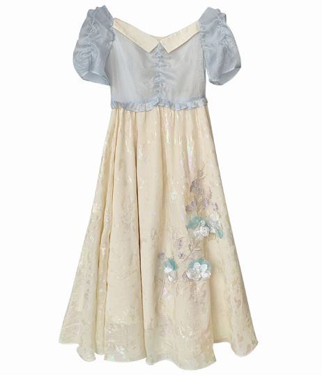 レディース ドレス パーティ ミディアム ロング マルチカラー 春夏 半袖 ビジュー パール フラワー モチーフ 花柄 プリンセス お姫様 かわいい フェミニン ハイウエスト 美シルエット ふんわり フレア セミロリータ semil0072