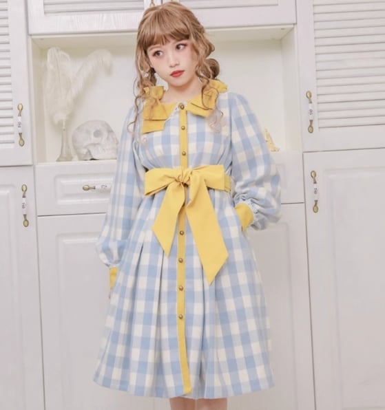 ロリータファッション/ロリータ/Lolita/ワンピース/ワンピ/ミディアム/リボン/ひざ丈/ボタン/バイカラー/ピンク/イエロー/ガーリー/カジュアル/ワンサイズ/長袖/春物/姫ロリ/パーティ/お呼ばれ/ユメ可愛い/人気/トレンド/おでかけ/パーティ/お呼ばれ/ダンス/茶話会/春夏/ゴスロリ/韓国ファッション/おしゃれ/デート