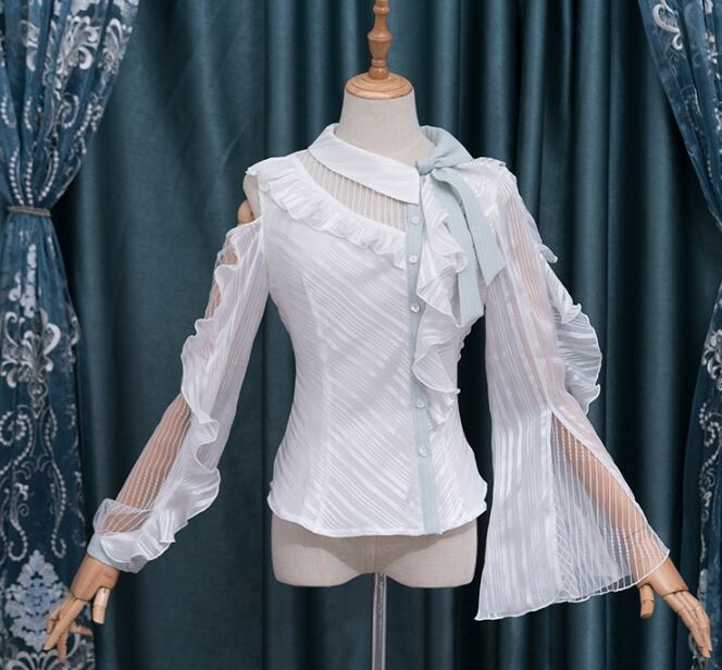 ロリータファッション/ロリータ/Lolita/ブラウス/シャツ/トップス/シルバー/ストライプ/無地/エレガント/クラシカル/清楚/華やか/ラッフル/フリル/大きいサイズ/サイズ豊富/レトロ/おでかけ/デイリー/フリル/こなれ感/ボタン/パーティ/ユメ可愛い/人気/トレンド/おでかけ/パーティ/お呼ばれ/ダンス/茶話会/春夏/ゴスロリ/韓国ファッション/おしゃれ/デート