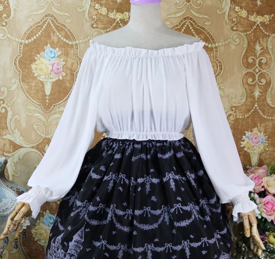 ロリータファッション/ロリータ/Lolita/ブラウス/トップス/カットソー/プルオーバー/ウエストマーク/ショート丈/ふんわり/オフショルダー/甘ロリ/フリル/きれいめ/エレガント/ホワイト/ブラック/ネイビー/レッド/クリーム/長袖/フレア袖/2way/オフショル/無地/着回し/美シルエット/フリーサイズ/おでかけ/デイリー/フリル/こなれ感/ボタン/パーティ/ユメ可愛い/人気/トレンド/おでかけ/パーティ/お呼ばれ/ダンス/茶話会/春夏/ゴスロリ/韓国ファッション/おしゃれ/デート