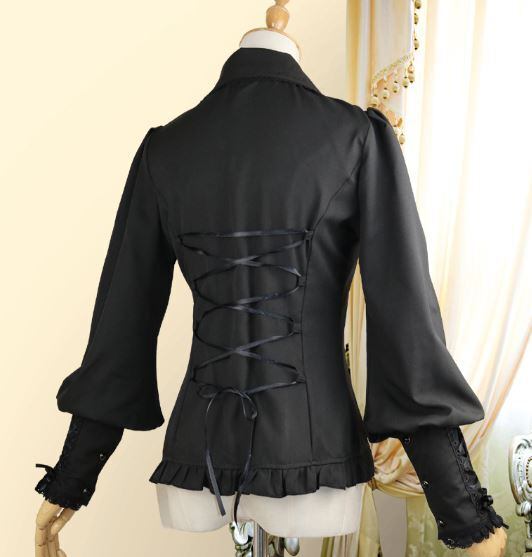 ロリータ レース アップ ブラウス 2色 ブラック ホワイト 無地 パフスリーブ バックコンシャス 丸襟 リボン フリル 大きいサイズ サイズ豊富 クラシカル クラロリ 上品 パーティ エレガント ゴスロリ ロリータファッション loli2765