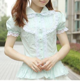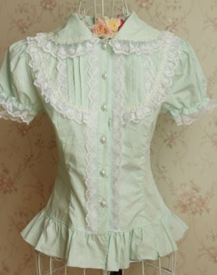 ロリータファッション/ロリータ/Lolita/ブラウス/トップス/シャツ/グリーン/ピンク/パール/ボタン/ビジュー/フリル/レース/リボン/甘ロリ/エレガント/きれいめ/フェミニン/レース/カジュアル/レトロ/おでかけ/デイリー/フリル/こなれ感/ボタン/パーティ/ユメ可愛い/人気/トレンド/おでかけ/パーティ/お呼ばれ/ダンス/茶話会/春夏/ゴスロリ/韓国ファッション/おしゃれ/デート