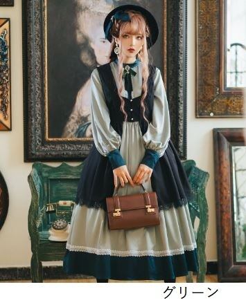 ロリータファッション/ロリータ/Lolita/ワンピース/ワンピ/グリーン/ブルー/シャンパン/リボン/ロング/フレア/Aライン/長袖/光沢感/きれいめ/フェミニン/クラシカル/レトロ/クラロリ/知的/かわいい/おしゃれ/大きいサイズ/サイズ豊富/人気/トレンド/おでかけ/パーティ/お呼ばれ/ダンス/茶話会/春夏/ゴスロリ/韓国ファッション/おしゃれ/デート