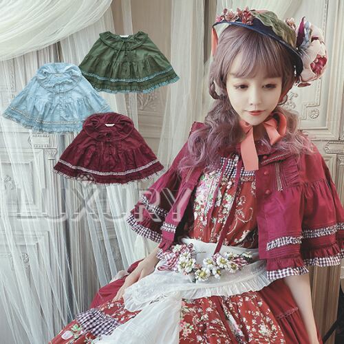 ロリータファッション/ロリータ/Lolita/レッド/ブルー/グリーン/フリル/パール調ボタン/無地/ギンガムチェック/ショート丈/ケープ/マント/ライトアウター/羽織り/甘ロリ/フリーサイズ/上品/フェミニン/おでかけ/甘ロリ/クラシカル/ユニーク/ワンサイズ/ゴシック/レトロ/ラブリー/キュート/プリント/姫ロリ/パーティ/お呼ばれ/ユメ可愛い/人気/トレンド/おでかけ/パーティ/お呼ばれ/ダンス/茶話会/春夏/ゴスロリ/韓国ファッション/おしゃれ/デート