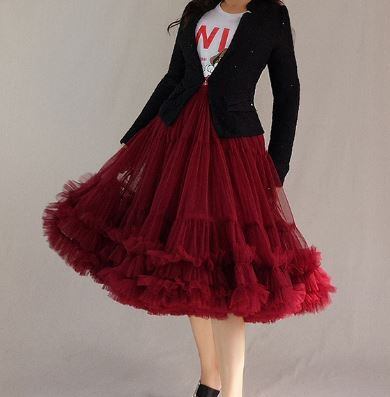 ミモレ丈スカート/膝丈スカート/2色/フレアスカート/ひざ下丈/ミモレ丈/チュール/無地/フリル/フリル/おしゃれ/こなれ感/上品/落ち着いた/かわいい/可愛い/フェミニン/春/春物/春コーデ/春服/夏/夏物/夏コーデ/夏服/普段着/デート/合コン/女子会/舞台/撮影/通学/散歩/休日/ボルドー/10代/20代/30代/40代