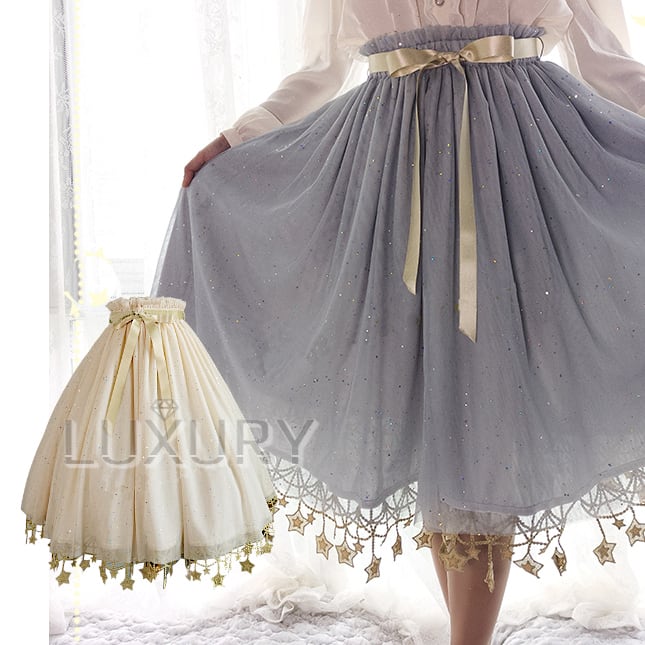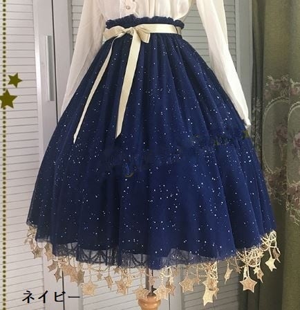 ロリータファッション/ゴスロリファッション/ゴスロリ/甘ロリ/姫ロリ/スカート/5色/無地/星柄/星/スター/星座柄/スター/星空/月/ムーン/パステルカラー/ジェラートカラー/マカロンカラー/ビビットカラー/プリント/膝丈//ひざ丈/ミディアム/ひざ下丈/ミモレ丈/チュール/童話風/かわいい/ゆめかわ/ゆるふわ/ラブリー/メルヘン/スウィート/ガーリー/フェミニン/きれいめ/華やか/優雅/レディースファッション/春/春物/春コーデ/春服/夏/夏物/夏コーデ/夏服/お茶会/撮影/舞台/撮影用/イベント/二次会/謝恩会/お呼ばれ/パーティー/普段着/普段使い/デイリー//お散歩/森/ピクニック/田園/デート
