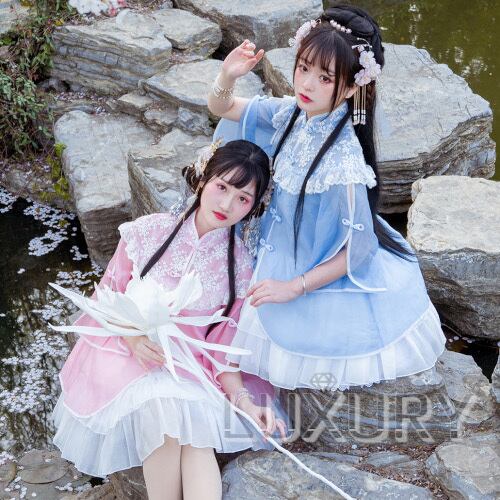ロリータファッション/ゴスロリファッション/ゴスロリ/華ロリ/中華ロリ/ワンピース/2色/無地/パステルカラー/ジェラートカラー/マカロンカラー/リボン/五分袖/立ち襟/ハイネック/シフォン/宮廷風/かわいい/ゆめかわ/ゆるふわ/ラブリー/メルヘン/スウィート/ガーリー/セクシー/フェミニン/上品/清楚/華やか/エレガント/優雅/レディースファッション/春/春物/春コーデ/春服/夏/夏物/夏コーデ/夏服/お茶会/撮影/舞台/撮影用/イベント/お呼ばれ/パーティー/普段着/普段使い/デイリー//お散歩/森/ピクニック/田園/デート