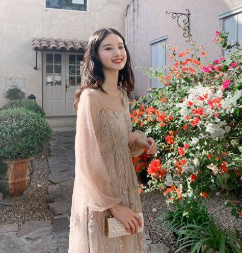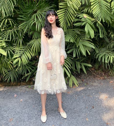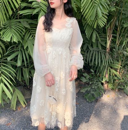 繊細なレースをたっぷりと使ったドレスワンピース。結婚式やパーティなど華やかなシーンにぴったりの一枚です。