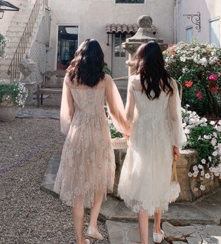セミロリータ/ワンピース/2色/無地/小花柄/花柄/お花/花柄/お花/パステルカラー/ジェラートカラー/マカロンカラー/重ね着風/レイヤード/膝丈//ひざ丈/ミディアム/ひざ下丈/ミモレ丈/長袖/丸襟/ラウンドネック/レース/レトロ/古風/かわいい/ゆめかわ/ゆるふわ/ラブリー/メルヘン/スウィート/ガーリー/大人可愛い/フェミニン/きちんと感/上品/清楚/きれいめ/華やか/エレガント/優雅/レディースファッション/春/春物/春コーデ/春服/秋/秋物/秋服/お茶会/撮影/舞台/撮影用/イベント/結婚式/ウェディング/二次会/謝恩会/お呼ばれ/パーティー/お散歩/森/ピクニック/田園/デート