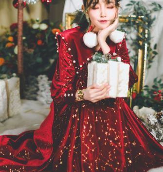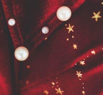 クリスマスデートにぴったりのロングワンピース。なめらかなベルベットにパールや星モチーフを散りばめたロマンティックな一枚です。