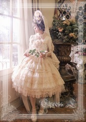 クラシカルなロココ調のドレスワンピースと帽子のセットアップ。エレガントな雰囲気たっぷりのアイテムです。
