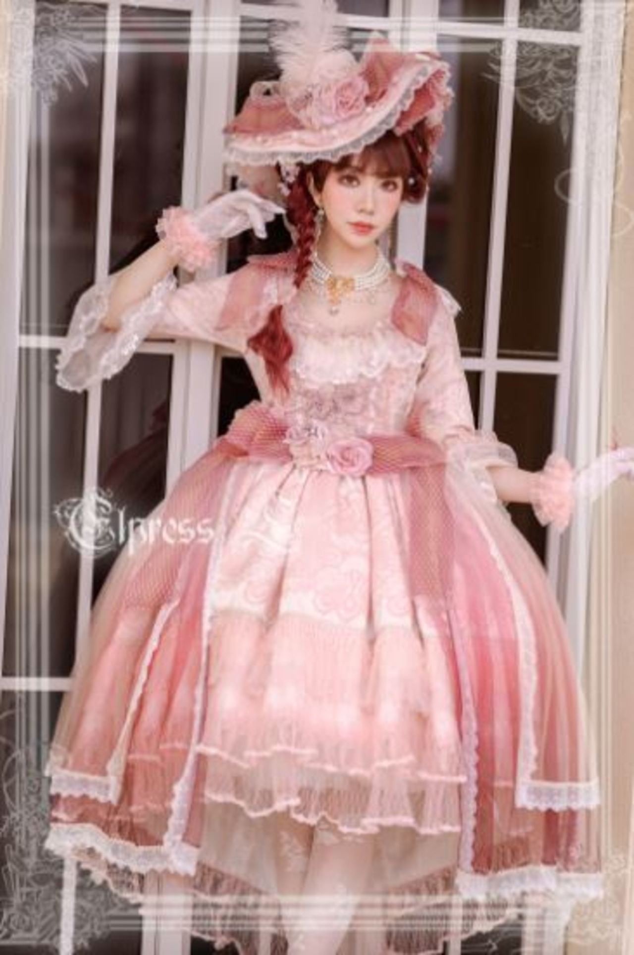 ロリータ ドレス+帽子セット 通年 ピンク フレア ミディアム 七分袖 ふんわり ロココ調 レース お花 モチーフ フラワー クラシカル クラロリ 甘ロリ 姫ロリ 大きいサイズ サイズ豊富 ハロウィン パーティ クリスマス 撮影 ゴスロリ ロリータファッション loli3330