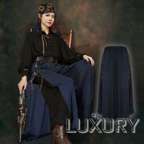 ロリータ パンツ steampunk スチームパンク ネイビー 無地 ギア チェーン スリット おしゃれ ロング フレア ボトムス 人気 撮影 おでかけ パーティ イベント ゴスロリ ロリータファッション loli3345