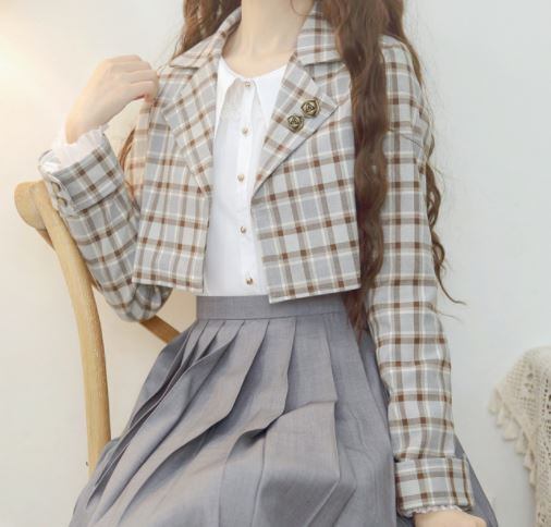 ロリータファッション/ジャケット/ショート丈/ブルー/チェック/長袖/テーラード/制服風/ガーリー/甘ロリ/カジュアル/おしゃれ/上品/ナチュラル/フレア/ふんわり/フリル/レース/かわいい/秋/秋物/秋服/冬/冬物/冬コーデ/冬服/お茶会/撮影/舞台/撮影用/ハロウィン/クリスマス/バレンタイン/イベント/結婚式/ウェディング/二次会/謝恩会/お呼ばれ/パーティー/デート