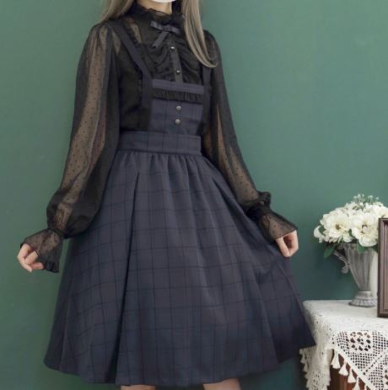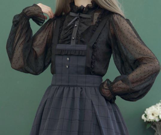 ロリータファッション/ブラウス/トップス/ドット/水玉/シフォン/透け感/フリル/ハイネック/長袖/リボン/キャンディスリーブ/パフ袖/ガーリー/甘ロリ/カジュアル/おしゃれ/上品/ナチュラル/フレア/ふんわり/フリル/レース/かわいい/秋/秋物/秋服/冬/冬物/冬コーデ/冬服/お茶会/撮影/舞台/撮影用/ハロウィン/クリスマス/バレンタイン/イベント/結婚式/ウェディング/二次会/謝恩会/お呼ばれ/パーティー/デート