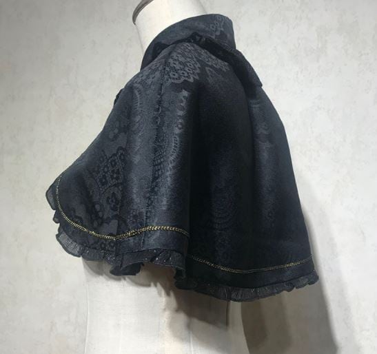 ケープ HinanaQueena 秋冬 マント ポンチョ ライトアウター かわいい 羽織り クラシカル クラロリ 姫ロリ ハロウィン イベント おでかけ 上品 お呼ばれ ブラック ゴールド ライン フリル お嬢様 ゴスロリ ロリータファッション loli3417