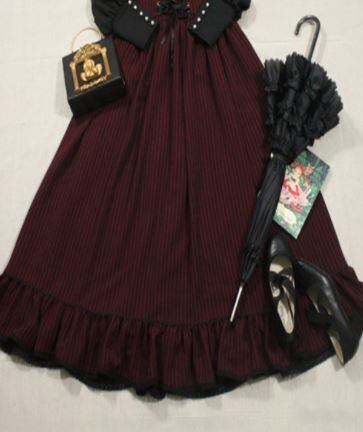 ロリータファッション/スカート/フレア/ロング/マキシ/フリル/ミディアム/ひざ下丈/ウエストマーク/英国風/ストライプ/制服風/レトロ/クラシカル/クラロリ/お姫様/姫ロリ/かわいい/秋/秋物/秋服/冬/冬物/冬コーデ/冬服/お茶会/撮影/舞台/撮影用/ハロウィン/クリスマス/バレンタイン/イベント/結婚式/ウェディング/二次会/謝恩会/お呼ばれ/パーティー/デート