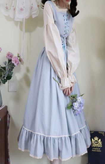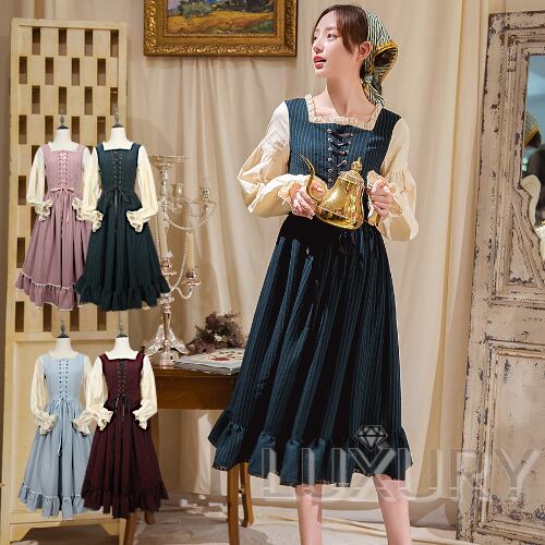 ロリータファッション/レース/ワンピース/ストライプ/ロングドレス/ワンピ/長袖/ミディアム/ひざ下丈/フリル/フレア/おしゃれ/エレガント/甘ロリ/クラシカル/クラロリ/お姫様/姫ロリ/かわいい/秋/秋物/秋服/冬/冬物/冬コーデ/冬服/お茶会/撮影/舞台/撮影用/ハロウィン/クリスマス/バレンタイン/イベント/結婚式/ウェディング/二次会/謝恩会/お呼ばれ/パーティー/デート