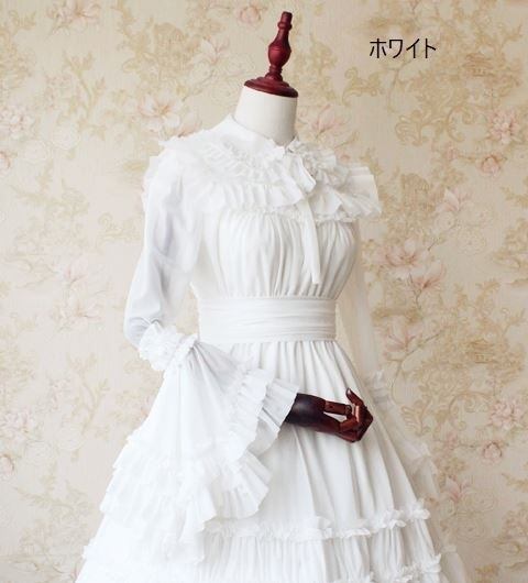 ロリータファッション/ブラウス/シフォン/カラバリ豊富/長袖/フリル/姫袖/姫ロリ/クラロリ/フレアスリーブ/エレガント/甘ロリ/春夏/春秋/通年/レース/お茶会/撮影/舞台/撮影用/ハロウィン/クリスマス/バレンタイン/イベント/結婚式/ウェディング/二次会/謝恩会/お呼ばれ/パーティー/デート