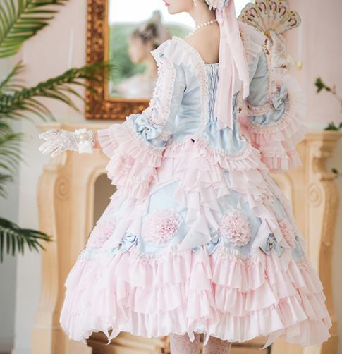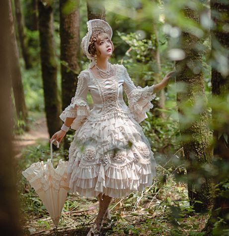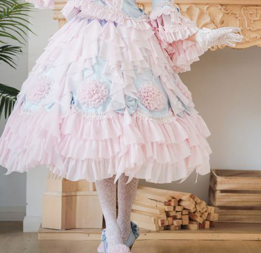 ロリータファッション/スカート/ミディアム/ひざ丈/フリル/フレア/ふんわり/ロココ調/エレガント/春夏/春秋/通年/レース/お茶会/撮影/舞台/撮影用/ハロウィン/クリスマス/バレンタイン/イベント/結婚式/ウェディング/二次会/謝恩会/お呼ばれ/パーティー/デート