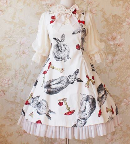 ロリータファッション/ジャンスカ/JSK/ジャンパースカート/ワンピース/ノースリーブ/ワンピ/ドレス/うさぎ/ラビット/プリント/ミニ/ショート丈/サイズ豊富/春夏/春秋/通年/レース/お茶会/撮影/舞台/撮影用/ハロウィン/クリスマス/バレンタイン/イベント/結婚式/ウェディング/二次会/謝恩会/お呼ばれ/パーティー/デート