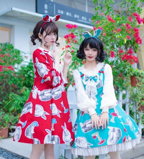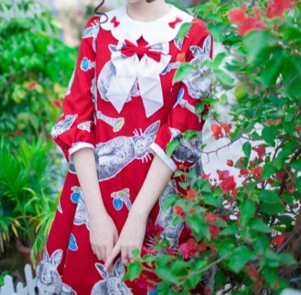 ロリータファッション/ワンピース/ノースリーブ/ワンピ/七分袖/襟付き/ドレス/うさぎ/ラビット/プリント/ミニ/ショート丈/サイズ豊富/春夏/春秋/通年/レース/お茶会/撮影/舞台/撮影用/ハロウィン/クリスマス/バレンタイン/イベント/結婚式/ウェディング/二次会/謝恩会/お呼ばれ/パーティー/デート
