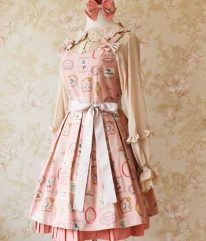 プリントジャンスカ 2色 通年 春夏 リボン ジャンスカのみ ショート丈 フレア 甘ロリ カジュアル お茶会 ティーカップ 総柄 ピンク メルヘン メイド メイド風 キュート 撮影 カフェ イベント おでかけ デート ゴスロリ ロリータファッション loli4105