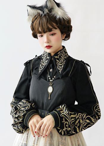 ロリータファッション/ブラウス/ふんわり/長袖/刺しゅう/パフスリーブ/襟付き/無地/シンプル/エレガント/クラシカル/クラロリ/姫ロリ/上品/きれいめ/トップス/半袖/春夏/春秋/通年/レース/お茶会/撮影/舞台/撮影用/ハロウィン/クリスマス/バレンタイン/イベント/結婚式/ウェディング/二次会/謝恩会/お呼ばれ/パーティー/デート