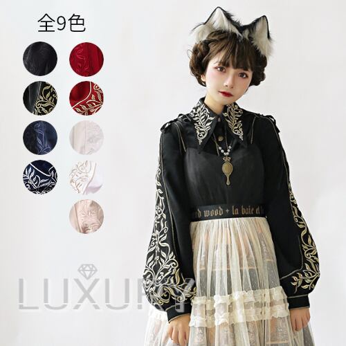 【納期40日/一部即納】ブラウス 5色 ふんわり ブラウスのみ 長袖 パフスリーブ 刺しゅう トップス ブラウスのみ クラシカル クラロリ カラバリ豊富 エレガント きれいめ 上品 無地 シンプル 着回し 撮影 お呼ばれ デート おでかけ ゴスロリ ロリータファッション loli4107