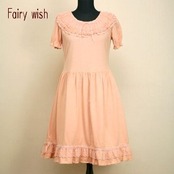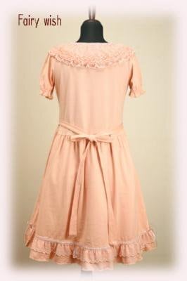 襟ぐりと裾のサイドについているリボンや、袖口と裾のフリルに施されたピコレースなど、可愛らしさを追求したカットソーワンピースです。