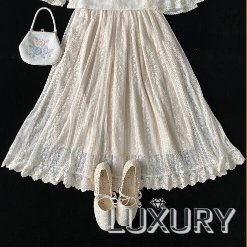 ロリータファッション/スカート/70cm丈/フレア/レース/フラワーレース/花柄/透け感/ふんわり/ウエストゴム/らくちん/ボトムス/着回し/アイボリー/シンプル/かわいい/レトロ/アンティーク/甘ロリ/クラロリ/お嬢様/姫ロリ/春夏/春秋/通年/レース/お茶会/撮影/舞台/撮影用/ハロウィン/クリスマス/バレンタイン/イベント/結婚式/ウェディング/二次会/謝恩会/お呼ばれ/パーティー/デート