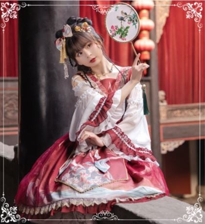 ロリータファッション/ワンピース/ワンピ/ドレス/ミディアム/ひざ丈/華ロリ/チャイナドレス/中国風/フレア/チュール/レース/お嬢様/姫ロリ/春夏/春秋/通年/レース/お茶会/撮影/舞台/撮影用/ハロウィン/クリスマス/バレンタイン/イベント/結婚式/ウェディング/二次会/謝恩会/お呼ばれ/パーティー/デート