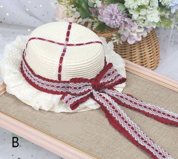 ロリータファッション/帽子/麦わら帽子/リボン/アクセサリー/ヘッドドレス/ヘアアクセサリー/リボン/レース/ビジュー/甘ロリ/クラロリ/クラシカル/雑貨/小物/かわいい/きれいめ/妖精/姫ロリ/上品/エレガント/上品/レトロ/お茶会/撮影/舞台/撮影用/ハロウィン/クリスマス/バレンタイン/イベント/結婚式/ウェディング/二次会/謝恩会/デート/お呼ばれ/パーティー/デート