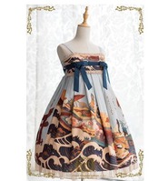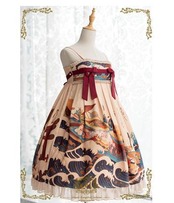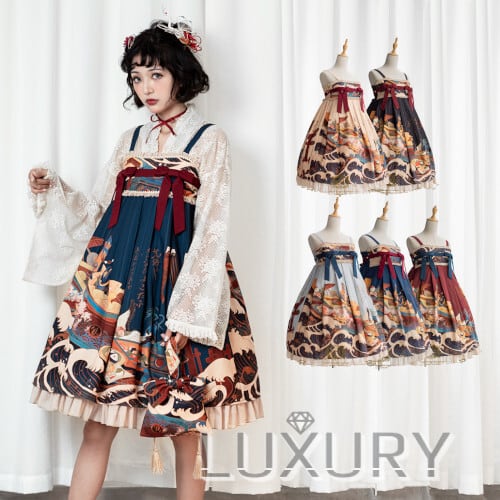 ジャンスカ 5色 JSK 和ロリ 通年 春秋 春夏 プリント リボン フリル レース フレア ミディアム丈 おしゃれ 和柄 和服 ひざ丈 ノースリーブ ドレス 撮影 イベント かわいい ゴスロリ ロリータファッション loli4386
