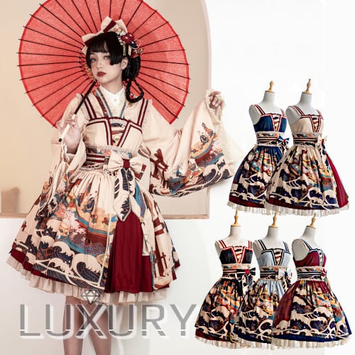 ロリータファッション/ジャンパースカート/JSK/ジャンスカ/ひざ丈/ミディアム丈/ウエストマーク/和ロリ/和柄/大正ロマン/レース/リボン/メイド/メイド風/森ガール/姫ロリ/レトロ/上品/発表会/かわいい/きれいめ/妖精/姫ロリ/エレガント/上品/レトロ/お茶会/撮影/舞台/撮影用/ハロウィン/クリスマス/バレンタイン/イベント/結婚式/ウェディング/二次会/謝恩会/デート/お呼ばれ/パーティー/デート