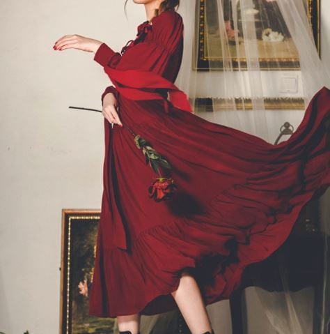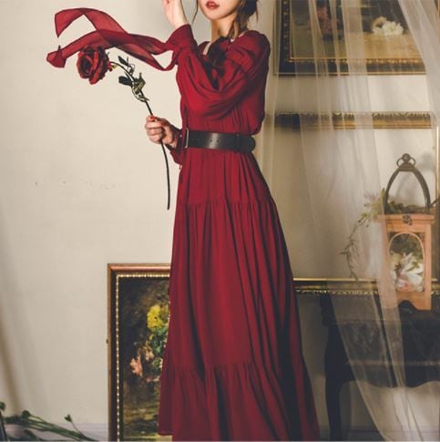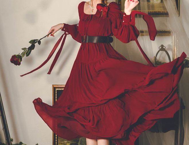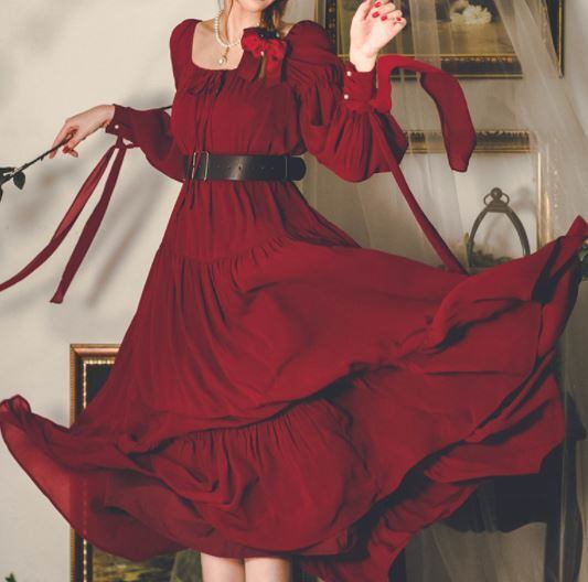 セミロリータ/ワンピース/ワンピ/ドレス/フリル/ワイン/スクエアネック/華やか/長袖/パフスリーブ/ロング/フレア/着回し/シンプル/無地/きれいめ/上品/エレガント/ガーリー/パステルカラー/ジェラートカラー/マカロンカラー/セクシー/フェミニン/クラシカル/お嬢様/かわいい/ゆめかわ/ゆるふわ/ラブリー/メルヘン/スウィート/ガーリー/大人可愛い/フェミニン/上品/清楚/きれいめ/華やか/レディースファッション/秋/秋物/秋服/冬/冬物/冬コーデ/冬服/お茶会/撮影/舞台/撮影用/お呼ばれ/パーティー/普段着/普段使い/デイリー/お散歩/森/田園/デート