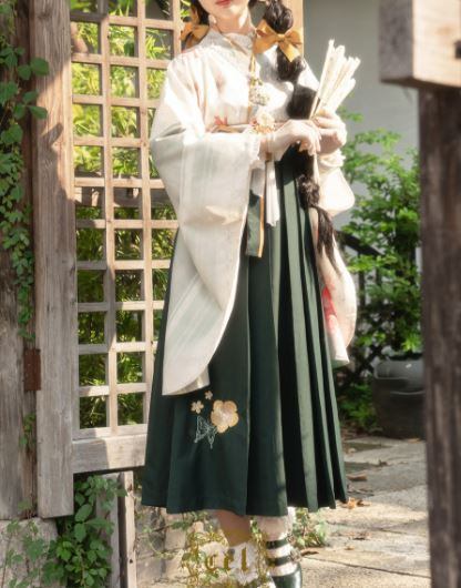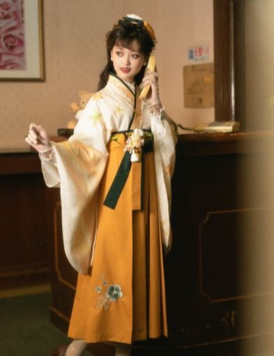 レトロな雰囲気たっぷりの袴風ロングスカート、小さなお花と蝶々のモチーフがポイントです。
