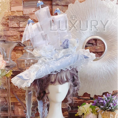 ロリータファッション/帽子/帆船/ボリューム/ヘッドドレス/雑貨/小物/リボン/フリル/レース/華やか/甘ロリ/クラシカル/クラロリ/プリンセス/フレア/姫ロリ/エレガント/上品/レトロ/お茶会/撮影/舞台/撮影用/ハロウィン/クリスマス/バレンタイン/イベント/結婚式/ウェディング/二次会/謝恩会/デート/お呼ばれ/パーティー/デート