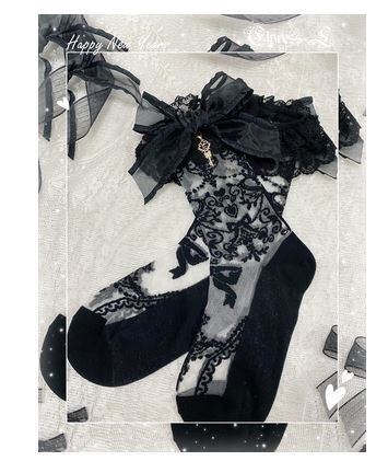 ロリータファッション/ソックス/ショート丈/レース/透け感/カギ/チャーム付き/甘ロリ/クラシカル/クラロリ/プリンセス/フレア/姫ロリ/エレガント/上品/レトロ/お茶会/撮影/舞台/撮影用/ハロウィン/クリスマス/バレンタイン/イベント/結婚式/ウェディング/二次会/謝恩会/デート/お呼ばれ/パーティー/デート
