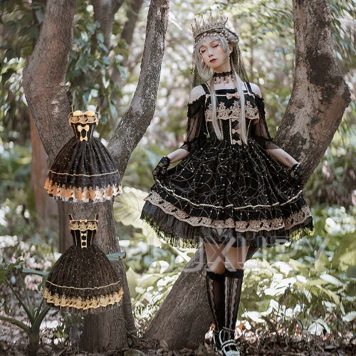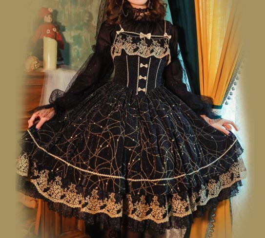 ロリータファッション/ワンピース/ワンピ/ドレス/キャミワンピース/ノースリーブ/バイカラー/ラメ/キラキラ/リボン/レース/フリル/メイド/メイド風/ラブリー/森ガール/クラロリ/クラシカル/甘ロリ/姫ロリ/エレガント/上品/レトロ/お茶会/撮影/舞台/撮影用/ハロウィン/クリスマス/バレンタイン/イベント/結婚式/ウェディング/二次会/謝恩会/デート/お呼ばれ/パーティー/デート