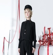 落ち感の良い素材を使った、シックなデザインのブラウスです。ブラウスのみの販売です。