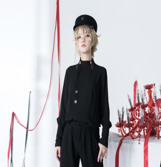 長袖ブラウス 秋冬 princess Chronicles トップス 着回し ブラック 男装 上品 きれいめ エレガント レイヤード 重ね着 無地 シンプル 華やか 撮影 イベント おでかけ お呼ばれ ロリィタ Lolita ゴスロリ ロリータファッション loli4727